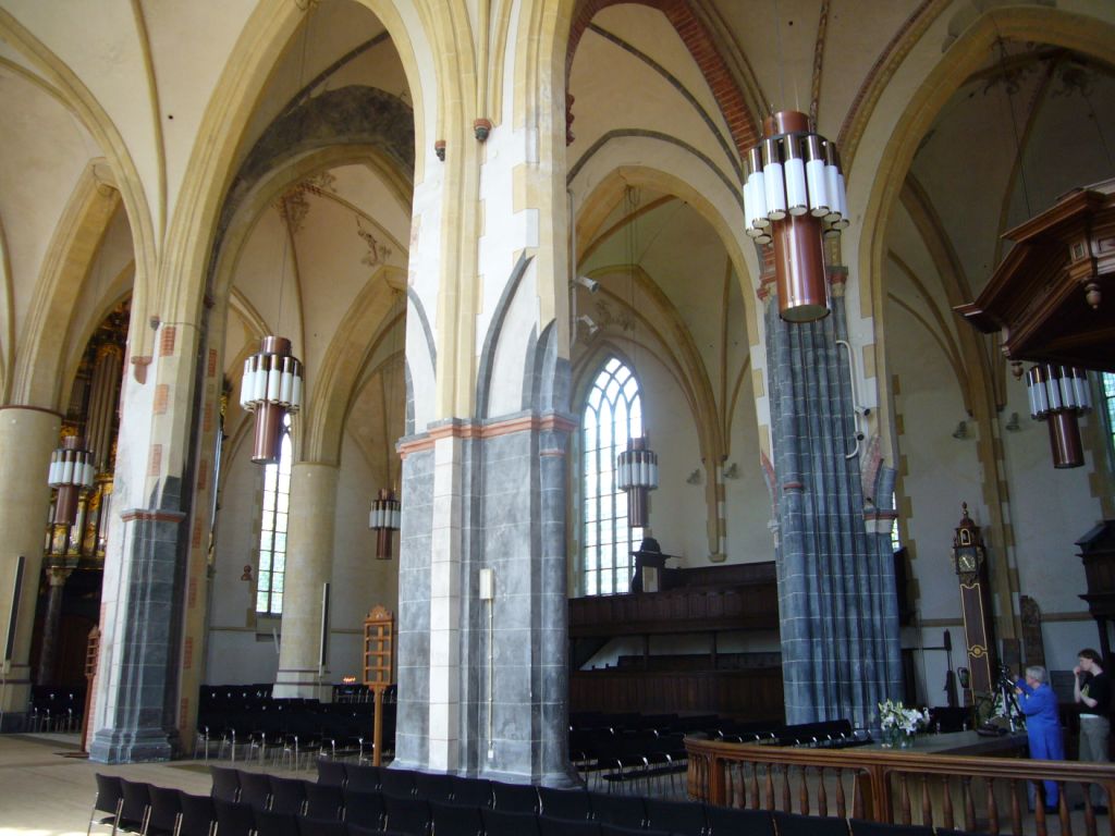 這座教堂最初由凝灰岩(一種石灰岩)建造而成。大約1300座教堂延伸,在西邊建造了3座大塔。根據傳說,弗里斯蘭英雄格魯特碼頭的骨架被埋葬在教堂裡。他於1520年去世。教堂風琴由著名的管風琴製造商施尼格爾於1710年建造。