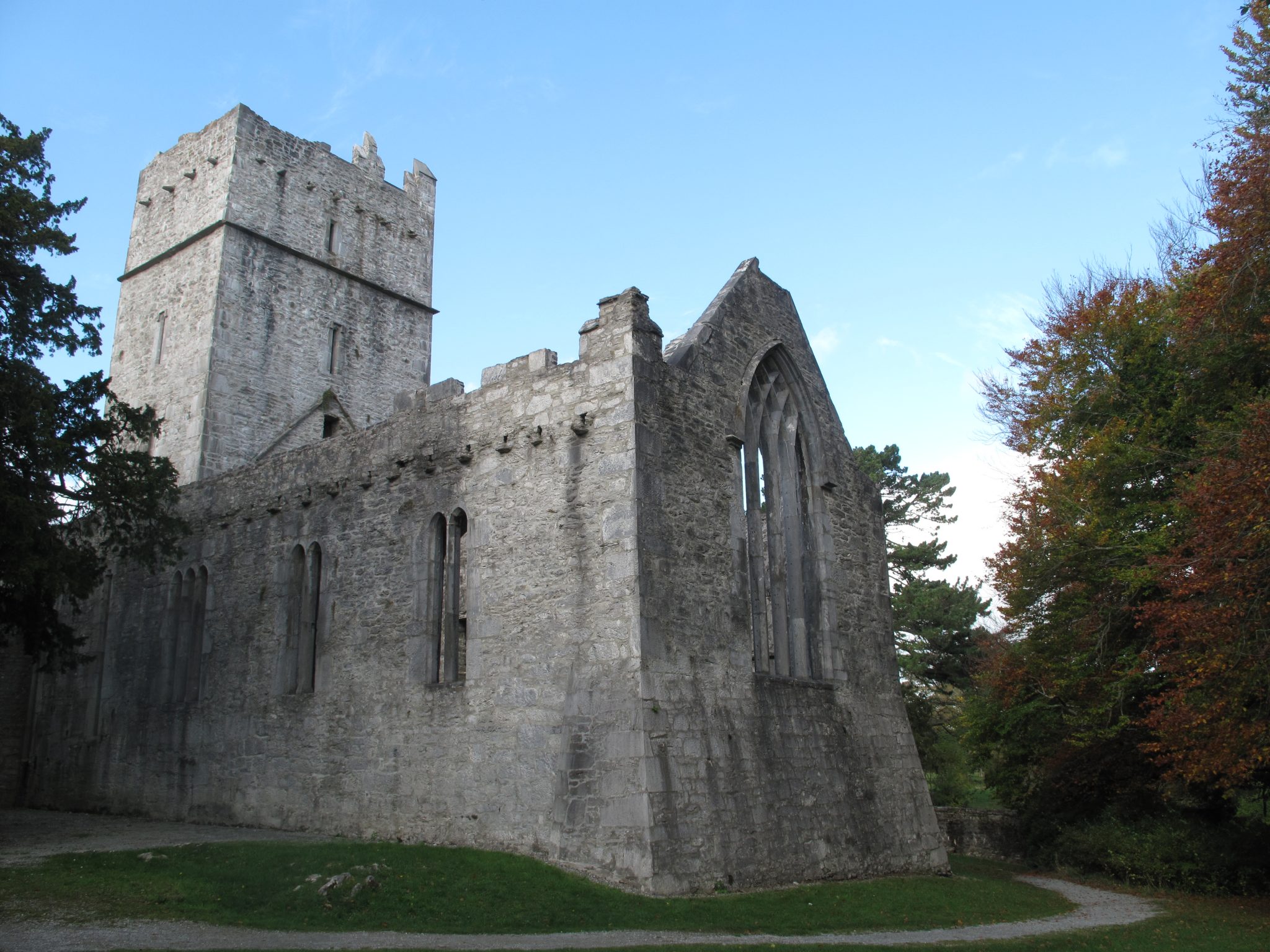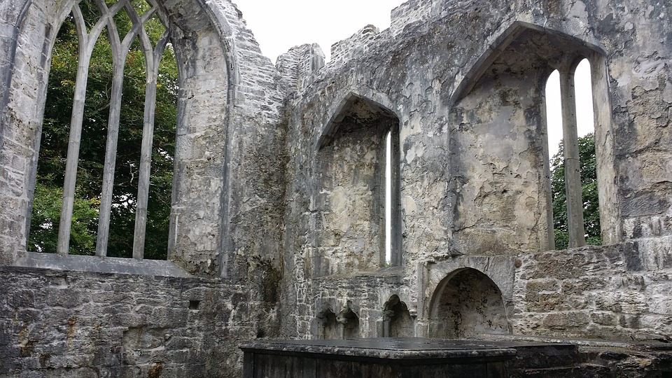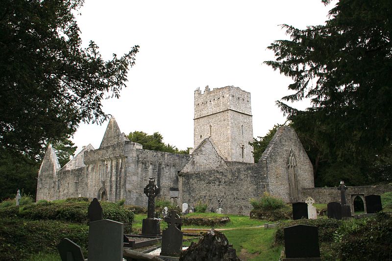 Irrelagh的方济各会修道院,现在被称为Muckross Abbey,是由Daniel McCarthy Mor于1448年为Observatine Franciscans成立的。尽管修道院在克伦威尔时代解散,但至少间歇性地在修道院仍在占领马克罗斯。现在保存完好的遗址包括一座宽阔的方形塔楼和精致的窗户,以及一个拱形回廊,拱形拱门围绕着一个方形庭院。在庭院中间长出一棵古老的紫杉树,传统上说它和修道院一样古老。Muckross修道院是当地酋长的埋葬地,在17和18世纪,三位盖尔诗人Geoffrey O’Donoghue,Aodhagan O’Rathaille和Eoghan Rua O’Suilleabhain。修道院周围地区的墓地仍在使用,每年都有许多墓葬。