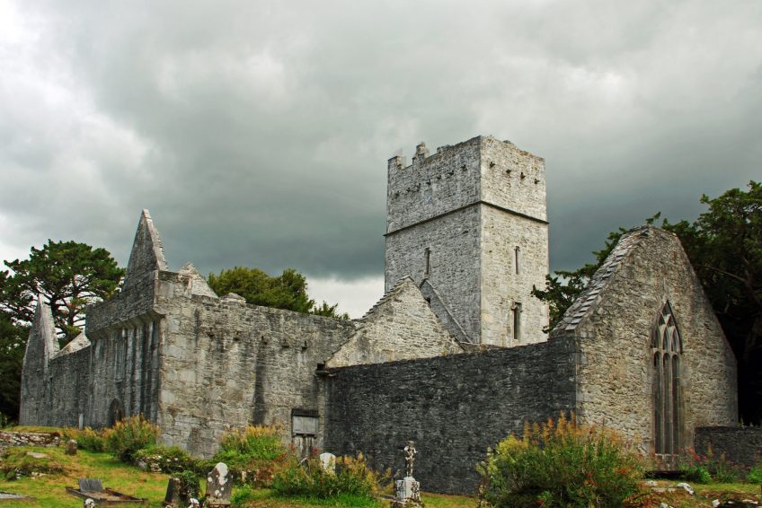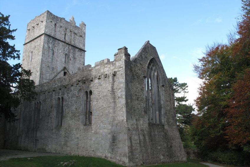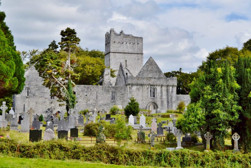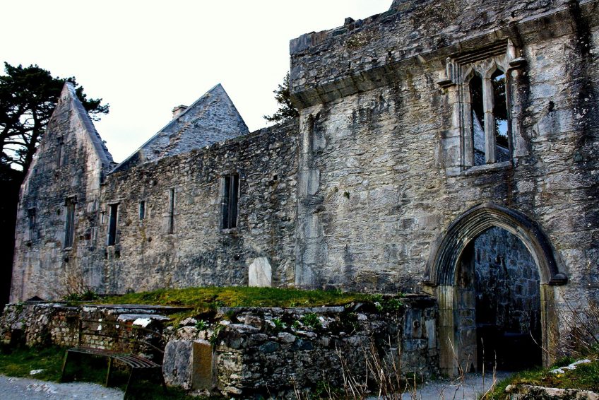 Irrelagh的方濟各會修道院,現在被稱為Muckross Abbey,是由Daniel McCarthy Mor於1448年為Observatine Franciscans成立的。儘管修道院在克倫威爾時代解散,但至少間歇性地在修道院仍在佔領馬克羅斯。現在保存完好的遺址包括一座寬闊的方形塔樓和精緻的窗戶,以及一個拱形迴廊,拱形拱門圍繞著一個方形庭院。在庭院中間長出一棵古老的紫杉樹,傳統上說它和修道院一樣古老。 Muckross修道院是當地酋長的埋葬地,在17和18世紀,三位蓋爾詩人Geoffrey O’Donoghue,Aodhagan O’Rathaille和Eoghan Rua O’Suilleabhain。修道院周圍地區的墓地仍在使用,每年都有許多墓葬。