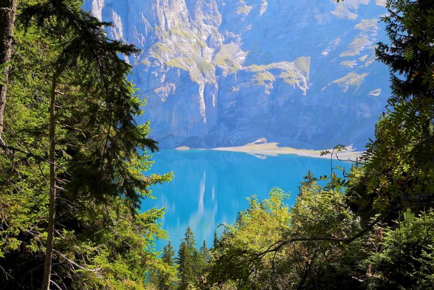 深蓝色的Oeschinensee厄希嫩湖周围环绕着壮丽的山脉世界,坐落在冰川和古老的松树林之间。一些导游甚至宣称这座高山湖泊是整个阿尔卑斯山脉中最美丽的 – 而且它们并没有太大的错误。