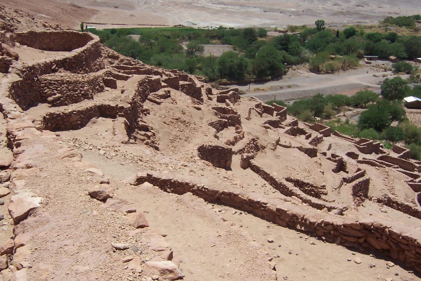 Quitor的普卡拉,建於十二世紀,位於2公里。聖佩德羅德阿塔卡馬的北方山脈德拉薩爾的南部,位於峽谷沿聖佩德羅河或格蘭德河山坡上。要塞,建立在達到80公噸的高度的坡度,由排列成從該全景圓形或方形梯田壁的到達谷。