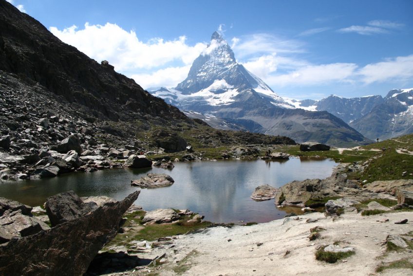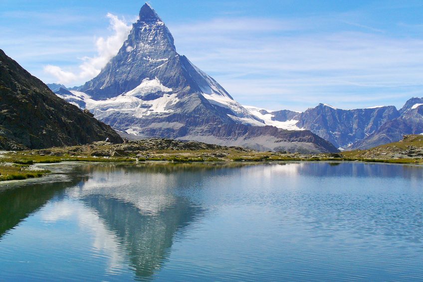 裡菲爾德湖(2,757米)提供極致的山區寧靜。馬特宏峰在水面上的反射是大自然中最精美的眼鏡之一。山脈之王馬特宏峰的視野,在巨大的天空構成的地平線上獨自站立,令人嘆為觀止:現場令人難以忘懷。最佳遊覽時間是沒有風,湖面完全靜止 – 通常是清晨或傍晚。