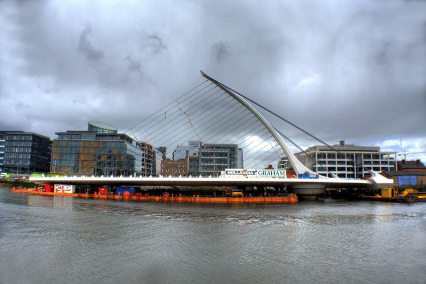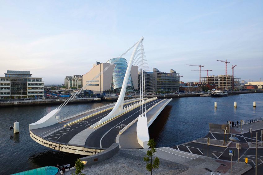 塞繆爾·貝克特橋是斜拉橋,鋼 箱樑結構的123米在利菲河的跨度。由Santiago Calatrava與Roughan O’Donovan(都柏林)合作設計; 該橋由Graham Hollandia合資企業承包商建造。格雷厄姆建造了橋台,河樞軸碼頭和道路工程。 Hollandia在鹿特丹和都柏林進行鋼結構/機械的製造,安裝和調試。 2007年4月30日在都柏林開始施工。