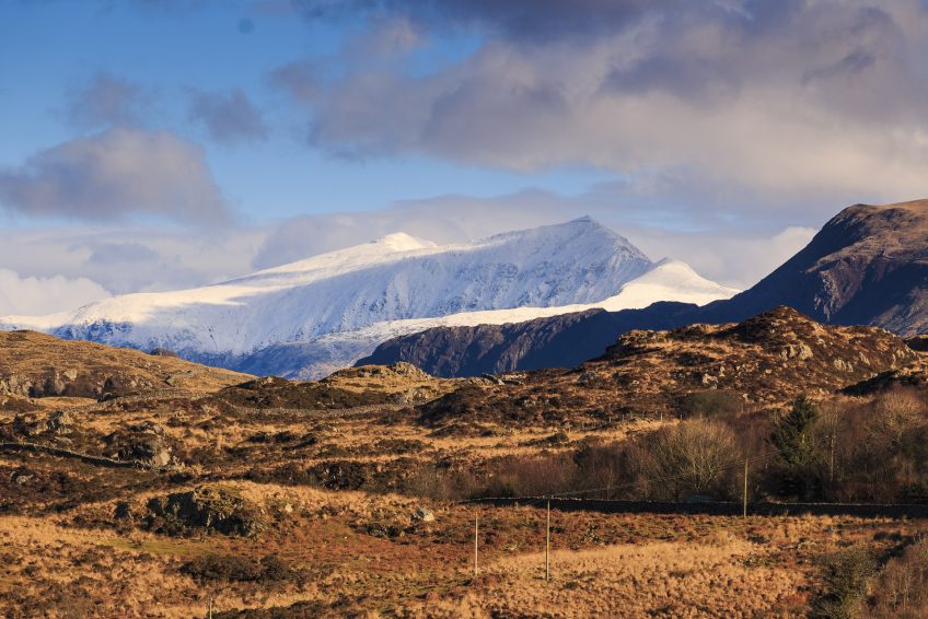 斯诺登山,海拔1,085米,相对高度1038米,威尔士第一高山,英国第二高山,不列颠群岛第2高山,位于威尔士圭内斯郡斯诺登尼亚国家公园内。“Yr Wyddfa”在威尔士文解作“钟状山”。该山接近爱尔兰海,山上有多种动物,是旅游胜地,邻近威尔士的著名的城市卡那封,山下有登山火车直达山上。