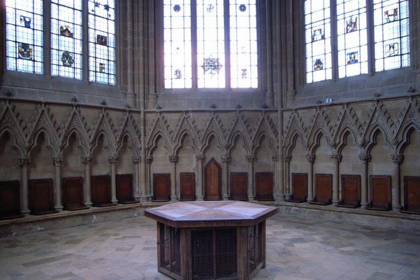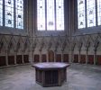 Southwell紹斯韋爾大教堂分會的房子始於1290年左右,遺憾的是我們對負責這項天才工作的工匠一無所知。每一個首都,簷口和柱子似乎都栩栩如生,植物上正確的樹葉和花朵雕刻,人物形象點綴在植物群中。這裡有毛茛,藤蔓,楓樹,山楂,啤酒花,常春藤等。每種治療方法都是獨一無二的,每一種治療方法都是從對自然的密切研 與後來高度風格化的中世紀雕刻不同,Southwell的葉子細節而且正確,直到葉子從莖上生長的角度。對細節的關注非常特別,與英格蘭不同。事實上,這是一位掌握工匠高手的工匠。