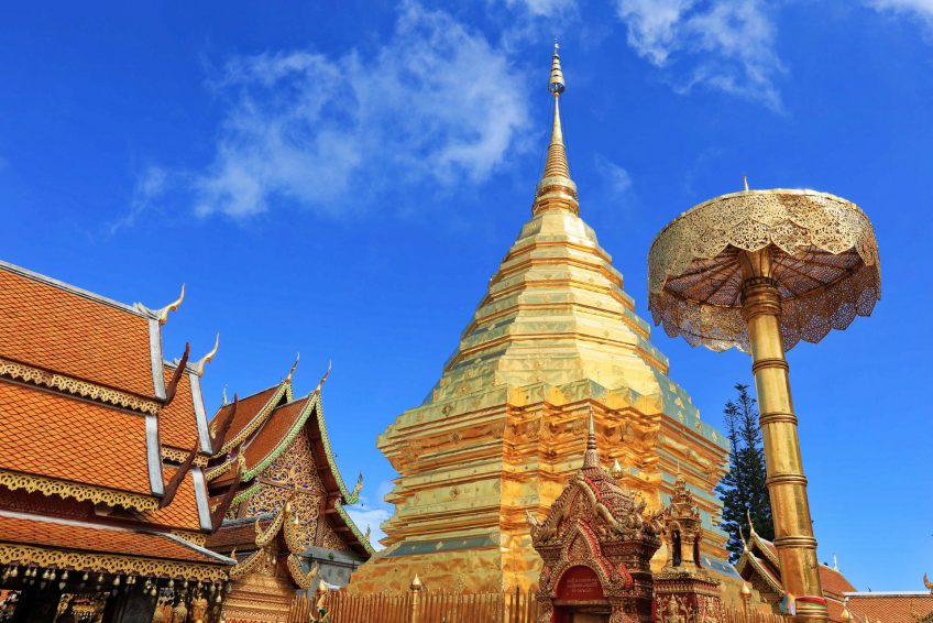 泰國被視為千佛國。 Wat Phra That Doi Suthep,泰國清邁省的小乘佛教寺廟,於13世紀開始建造。據說,一頭白象選擇了寺廟的遺址,一個王室進行了建築工作。這座寺廟的名字叫“雙龍”,因為兩條金龍在山路上守著寺廟。