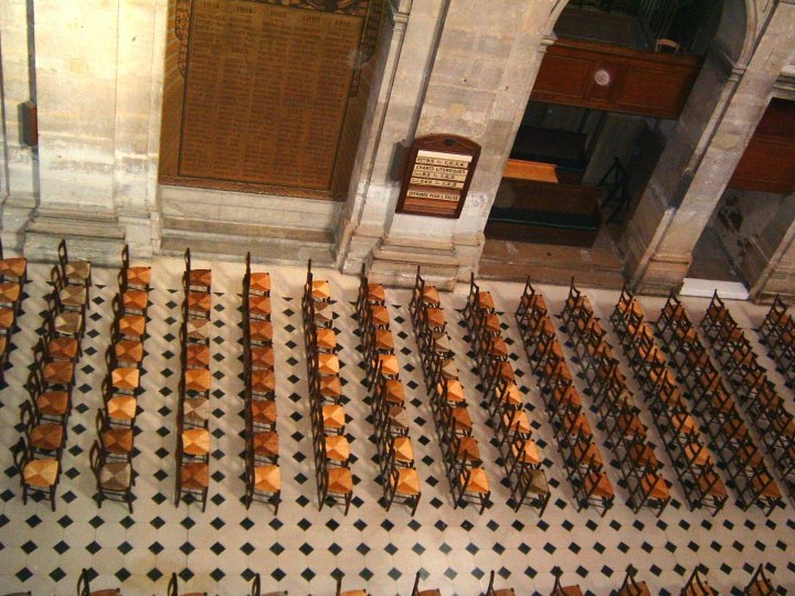 教堂中殿在前教堂(今天被看台佔據)開放,其拱門呈半圓形。這些教堂被稱為“籃子把手”的看台所覆蓋,因為它們的拱形具有非常小的曲率。經典風格是中殿的標誌:柱子兩側是科林斯式壁柱。