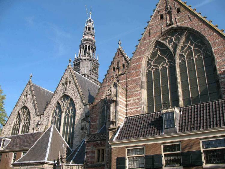 建於1306年的老教堂(Oude Kerk)和北荷蘭的第一座大廳教堂成為該地區許多其他教堂的典範。幾個世紀以來建造了許多新增建築,例如16世紀初的大型教堂。同樣可追溯到這個時期的是一個通往鐵教堂的門戶,其中顯示城市特權的文件,包括1275年免於通行費的免費,被鎖在鐵門後面。該塔樓建於16世紀,擁有1658年的鍾琴,被認為是該國最好的鐘樓之一(它還可以欣賞到城市的美景)。教堂內部的特色可以追溯到宗教改革之前,包括1555年荷蘭文藝復興時期的三個宏偉窗戶和精雕細刻的木製唱詩班攤位。 Zeedijk,阿姆斯特丹最古老的街道之一。這裡的許多房屋都與垂直方向傾斜,而位於1號的15世紀房屋被認為是該市最古老的建築。