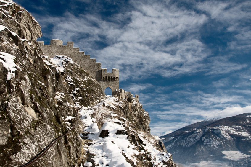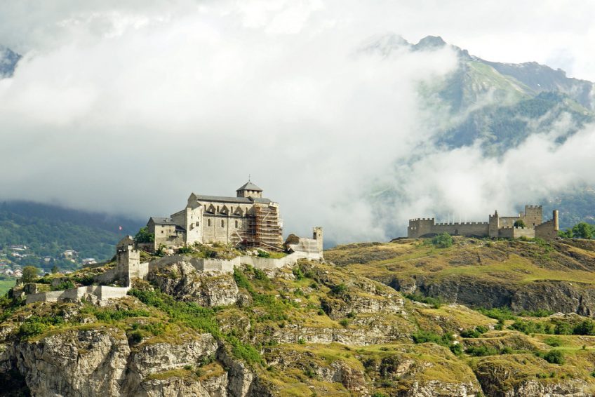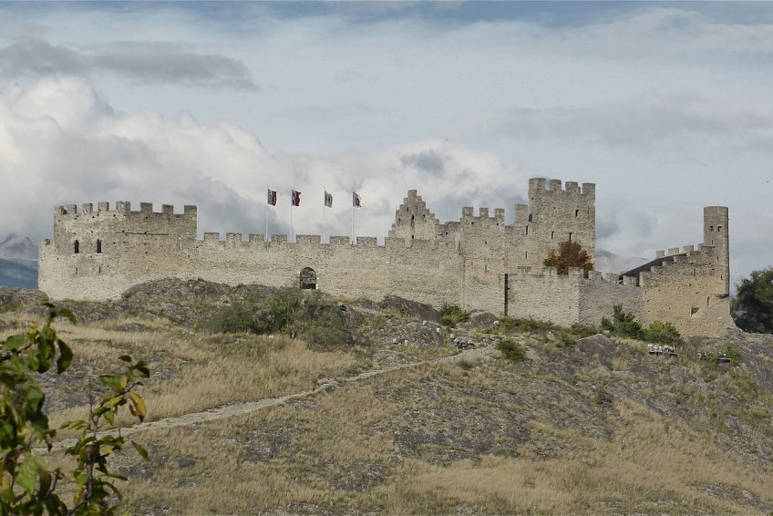 Tourbillon Castle陀飛輪城堡坐落在一座小山上,面向位於對面山丘的Basilique de Valere。城堡周圍環繞著一個環形牆,沿著尖頂的不規則頂部。