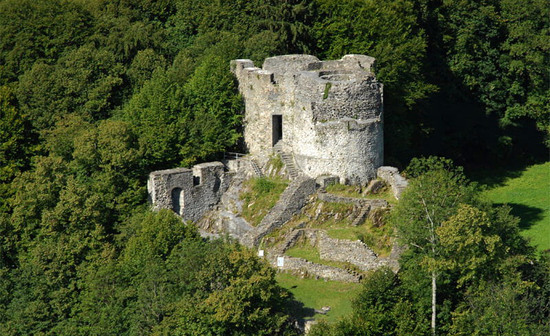 虽然原始结构的遗骸不多,但它在当时是古典意义上的城堡。中央圆塔主宰最高点,上部石墙建筑和环形墙。建在岩石之上,只能从北侧进入庭院,使其成为一个小而实际上难以穿透的堡垒。