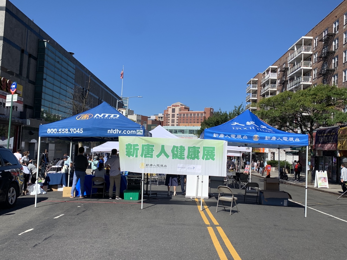 9月25日,由近年兴起的独立华文媒体新秀大纪元、新唐人媒体集团主办的“新唐人户外健康展”,在纽约法拉盛中心区凯辛娜大道(Kissena Blvd.)图书馆旁举行,吸引了数千纽约市民参与,现场气氛热闹喜庆。有国会议员、纽约市议员发贺信、褒奖或到现场支持。