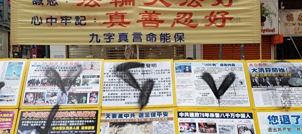 亲共者涂污香港法轮功真相点 市民帮报警