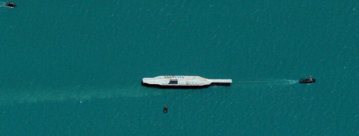 迪拜卫星图像显示,伊朗已将一艘模拟的美国航空母舰移至战略要塞霍尔木兹海峡,暗示伊朗将使用相像的战舰在海湾航运通道的战争中进行目标练习。使用伪造的美国军舰已成为伊朗革命卫队及其海军部队偶尔训练的特征,包括在2015年,伊朗导弹击中了类似于尼米兹级航空母舰的模型。美国太空技术公司Maxar Technologies在7月26日拍摄的一张图片显示,一艘伊朗快速攻击船在战略航道上向美国标准航母移动。