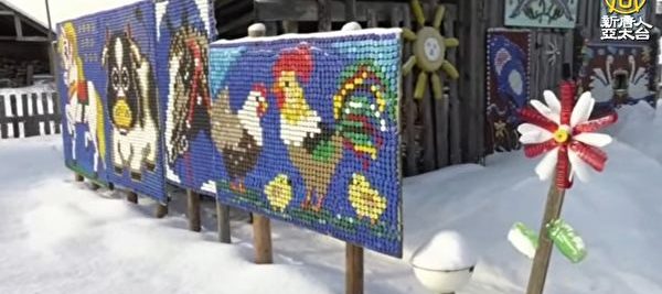 莫斯科以东850公里处的马克瑞(Makarye)村庄中,有一栋宛如露天美术馆的小屋,墙上的一幅幅画作都是用塑胶瓶盖一个一个钉上去所完成的马赛克艺术作品。