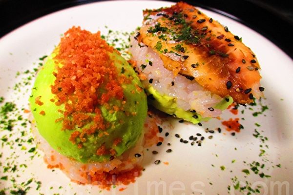 寿司是日本人的主食之一,作法也多样,常见的有卷寿司、散寿司、握寿司和押寿司 。酪梨做材料加入寿司的款样中,变身“加州卷”成了北美和加拿大寿司排名中的冠军!试一试将一整个酪梨作为押寿司的主角,配合咸鱼,玩一玩酪梨押寿司,大块食材、大快朵颐。