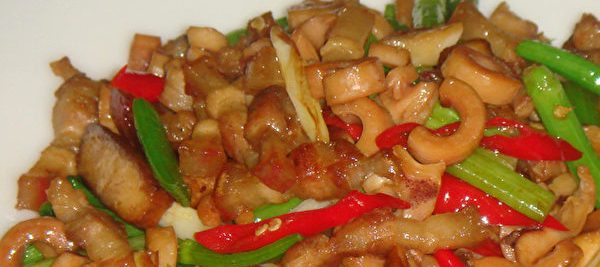 三层肉下锅榨出油,肉吃起来肥而不腻。(摄影: 林秀霞 / 大纪元)