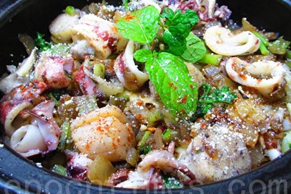 2、记着平底锅炒海鲜,和洋葱翻炒一下即刻熄火,入到陶锅慢煮保鲜嫩。