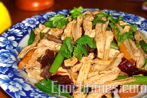 炎热的天气里,为了增进食欲,特向读者介绍“红油鸡丝”,所采用的食材是以高蛋白低脂肪的鸡胸肉为基底,辅以富含辣椒素和维生素C可开胃醒脾的红油(辣椒油),富含蛋白质的豆干,富含植物胶质和多糖体可抗癌的黑木耳,富含水分和纤维可减肥的芹菜,富含大蒜素和硫化合物可杀菌抗癌的大蒜,富含精油和胡萝萄素可去腥醒脾的香菜,故能达到开胃爽口、增进食欲、健康养生的效果。