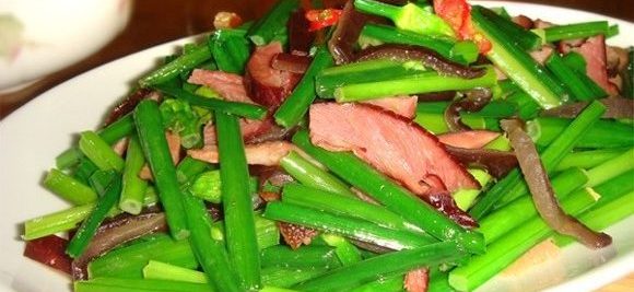 韭菜花200克、腊肉适量、木耳2朵、辣椒2支、盐适量(因腊肉具咸味)。