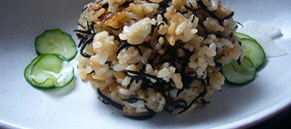 2、米1杯水1杯放电子锅中,摆上羊樨菜、日本高汤酱油,略拌匀。以煮菜饭行程煮熟,锅底会形成薄薄的锅巴。以煮白饭行程煮熟也可,比较不会有锅巴。