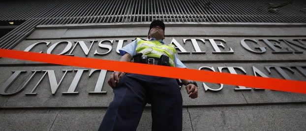 美国驻香港总领事馆于8月25日对外宣称,该领馆的一名43岁的外籍职员,在下午4点左右离开领馆后,遭到不明身份的陌生人的袭击。施暴男子随后逃离现场。该职员受袭后头部受伤流血,被送往医院包扎治理。香港警方接到领馆报案后正在展开调查。领馆职员为何遭袭至今原因不明。警方看完闭路电视后,已锁定一名35岁中国籍男子。