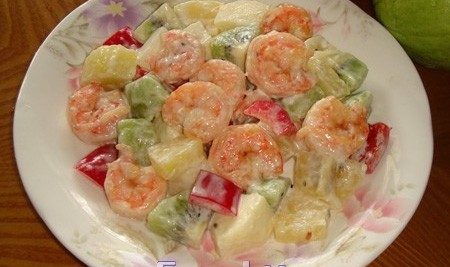 1、为了促进热天的食欲,特向读者介绍本道沙拉,所采用的食材是以含高蛋白质且低脂肪的虾仁为基底,辅以含丰富果胶、膳食纤维、多种维生素及叶酸的奇异果,含丰富膳食纤维、多种维生素、钙及铁的梨子,含丰富果胶及膳食纤维的苹果,含丰富凤梨酵素、多种维生素及膳食纤维的凤梨,含丰富维生素C、B及膳食纤维的红彩椒等食材,将虾球、水果及红彩椒用沙拉酱拌匀,调出恋爱的好滋味来促进食欲哦!