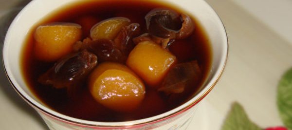 五、备一锅水煮开,加入糖、桂圆煮约三分钟,再将煮熟的地瓜圆放入即完成。