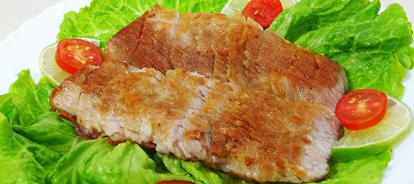 做法:先将松阪猪肉洗净擦干,生菜洗净沥干铺盘,柠檬和蕃茄切片备用。