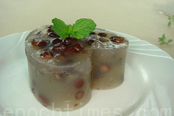 把糊状的红豆马蹄浆,用电锅蒸30分钟,就是香甜Q软的红豆马蹄糕(摄影: 林秀霞 / 大纪元)