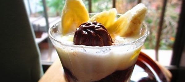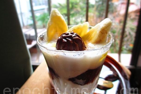 装在高杯里的圣代,用层层优格代替冰淇淋,讲究新时尚的健康美味。
