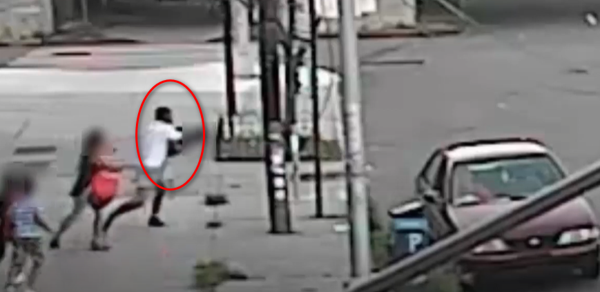事情发生在当地时间7月15日(周四)晚上约8点,皇后区牙买加山边大道117-02号(117-02 Hillside Avenue),视频显示,这位母亲带着三个孩子正在路上行走,5岁男童走在最前面,他的母亲就在他身后几米远的位置。一名身形壮硕的黑人男子突然从一辆红色的车上下来,冲到孩子面前,一把抱起男童往车上跑去。随后,绑匪打开车的左后门将男童放到座位上。马上打开左前门想开车逃走。视频请点这里