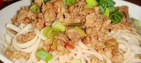 4、水煮滚,下面条煮熟捞起,将鱼香肉酱淋在面上,即变成一道夏日可口的佳肴:“鱼香肉酱拌面”。