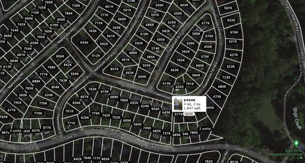 为何收到这么多报价?从这个房子的所在地分析,第一个库存少,第二个她的location算不错,靠近DC,环境清幽整洁,周边的房产根据zillow网站的评估,都有六十几万的价位,而且面积都比她小,所以这位卖方经纪等于是用超低开价来钓鱼,没料到竟钓出88尾来抢食,当然这个房产的屋况也很差,所以经纪人也知道,买方势必要大整修一番,甚至推倒重建,所以开价低也是合理的。