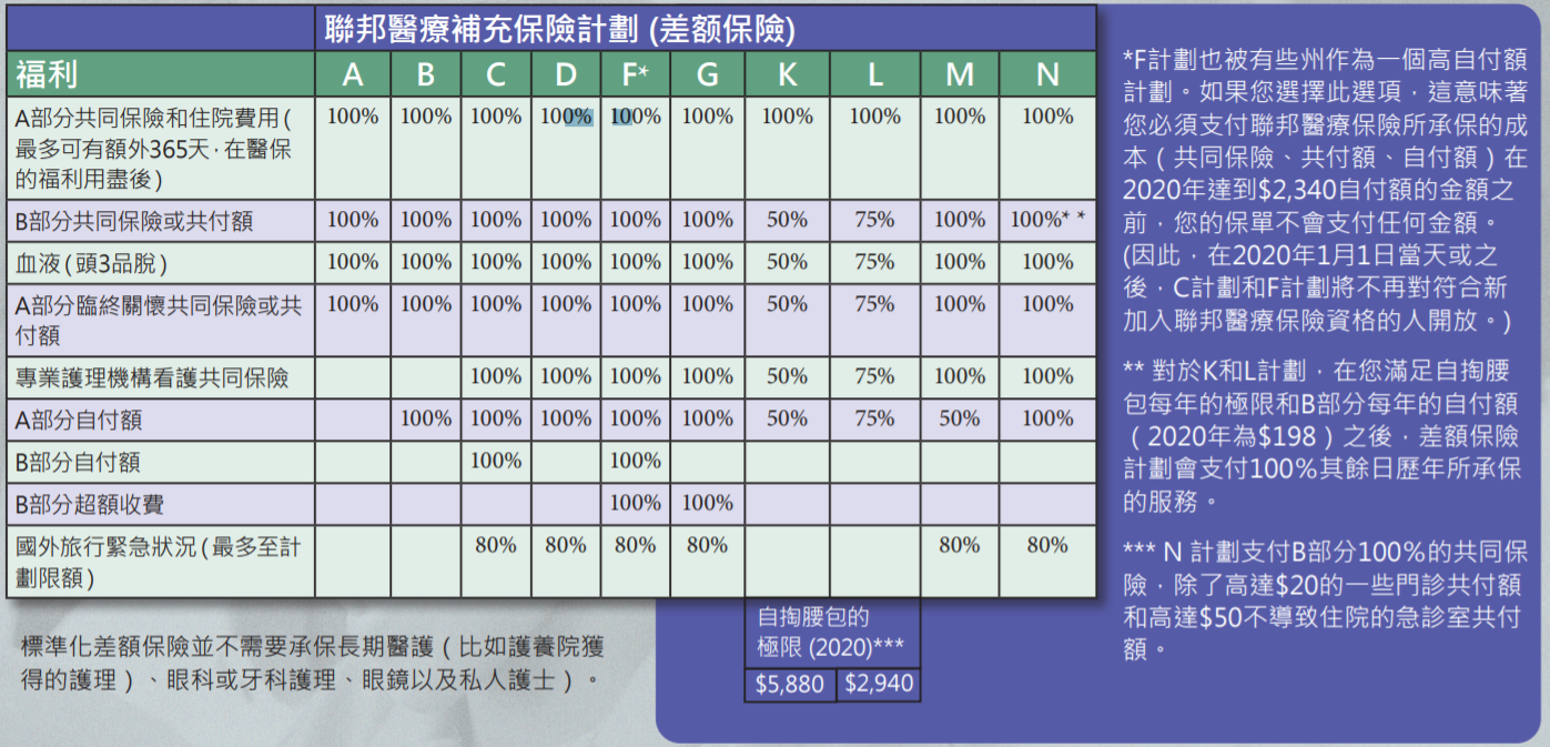 如今有一种新的G计划,被称为是“高自付额G计划” High Deductibel Plan G,这个子计划的自付额度非常高,2022年度的自付额高达2,490美元,根据这份计划的规定,您一年所用的医疗费用要先达到这个数字,才开始100%报销之后产生的A部分和B部分的医疗费用。