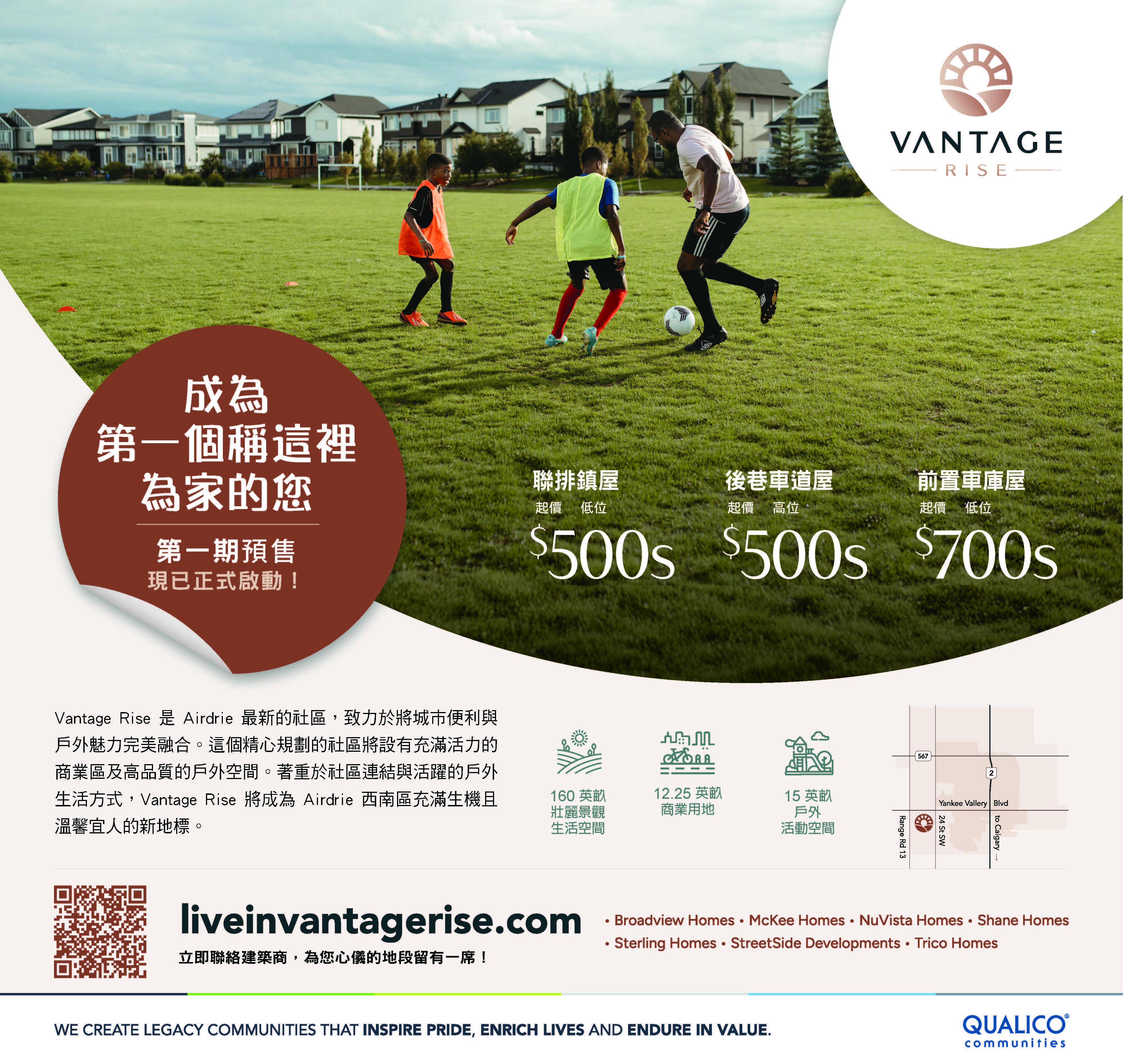 Keywords: 卡尔加里都会区/卡加利都会区/卡城都会区/全新社区/Vantage Rise社区/Airdrie/艾尔德里/Qualico Communities 房地产开发商/Qualico 集团/建筑商/ Streetside Developments/Broadview Homes/Shane Homes/McKee Homes/Sterling Homes/NuVista Homes/Trico Homes/亚伯塔省/Calgary/Alberta/