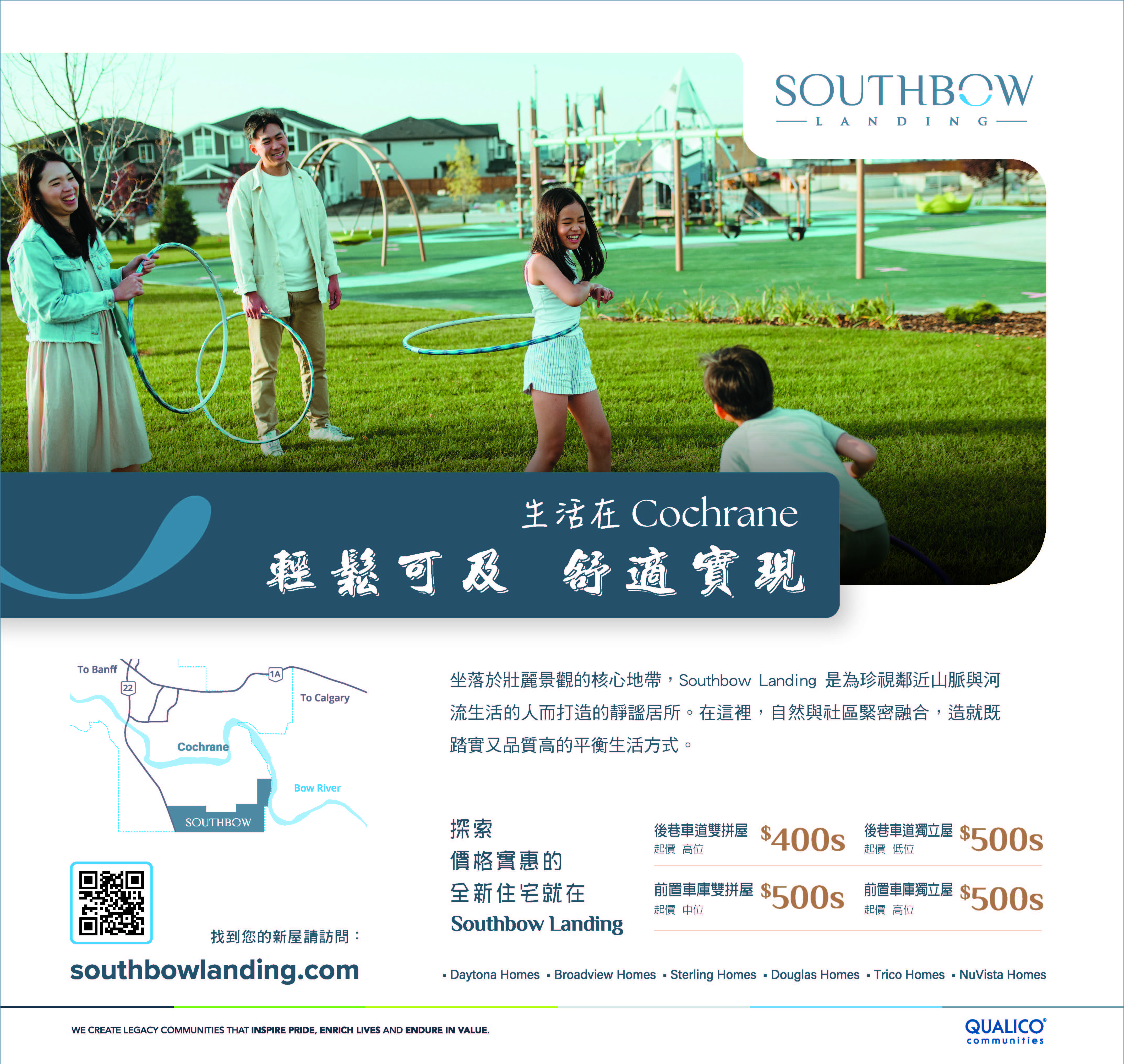 Keywords: 卡尔加里都会区/卡加利都会区/卡城都会区/全新社区/Southbow Landing社区/Cochrane/科克伦镇/Qualico Communities 房地产开发商/Qualico 集团/建筑商/ Daytona Homes/Sterling Homes/Trico Homes/Broadview Homes/NuVista Homes/Douglas Homes/亚伯塔省/Calgary/Alberta/