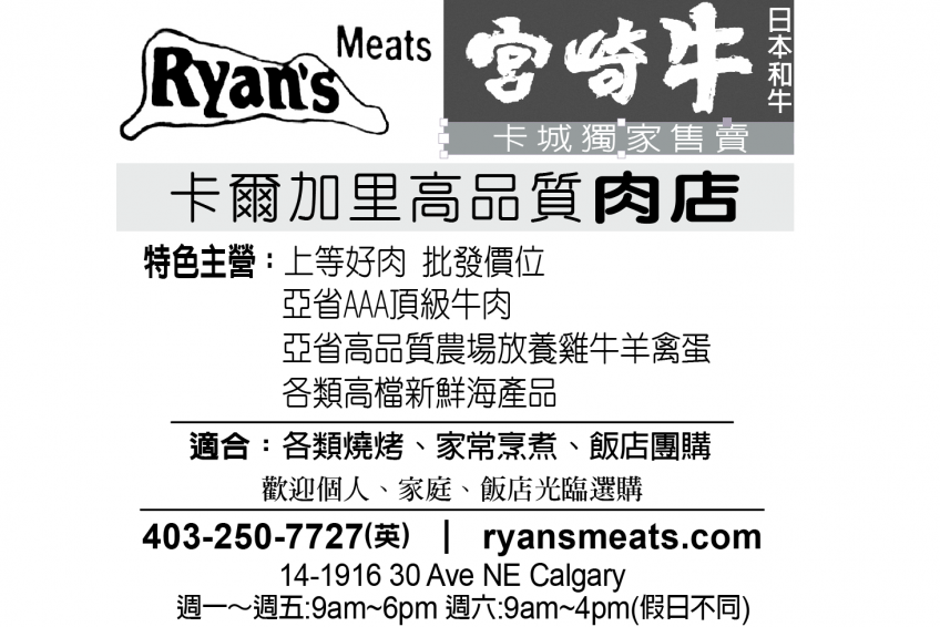 卡尔加里 肉店 Ryan’s Meats 电话:403-250-7727