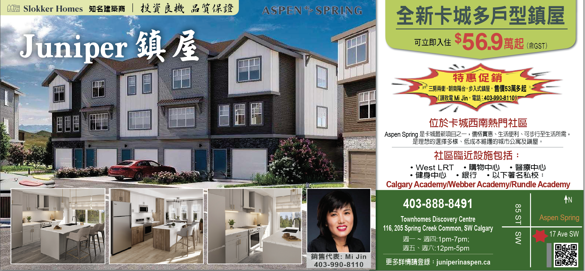 步入式一层镇屋 $53 万起 ( 请致电 Mi Jin 403-990-8110)
