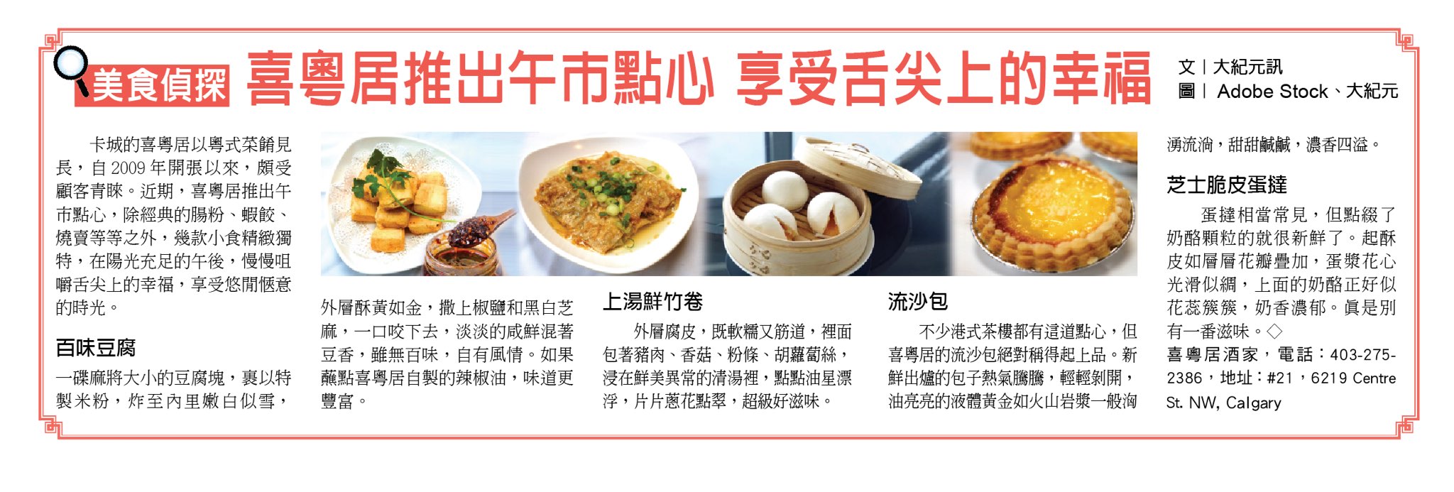 光顧喜粵居多年了!可算是卡城最正宗的粵菜餐廳。價格是走大眾化路線!平日中午的粥粉麵套餐超抵食!