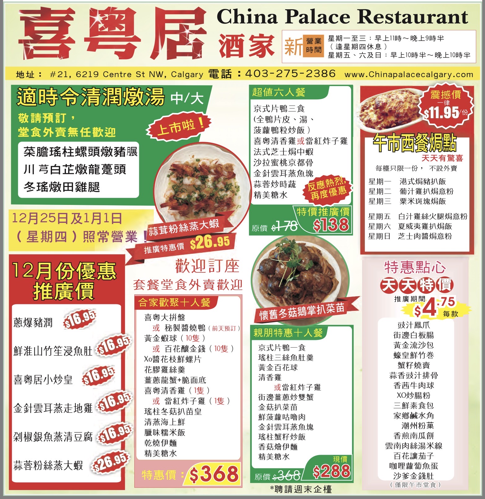 卡尔加里/卡加利 粤菜餐馆 喜粤居酒家 China Palace Restaurant 电话:403-275-2386