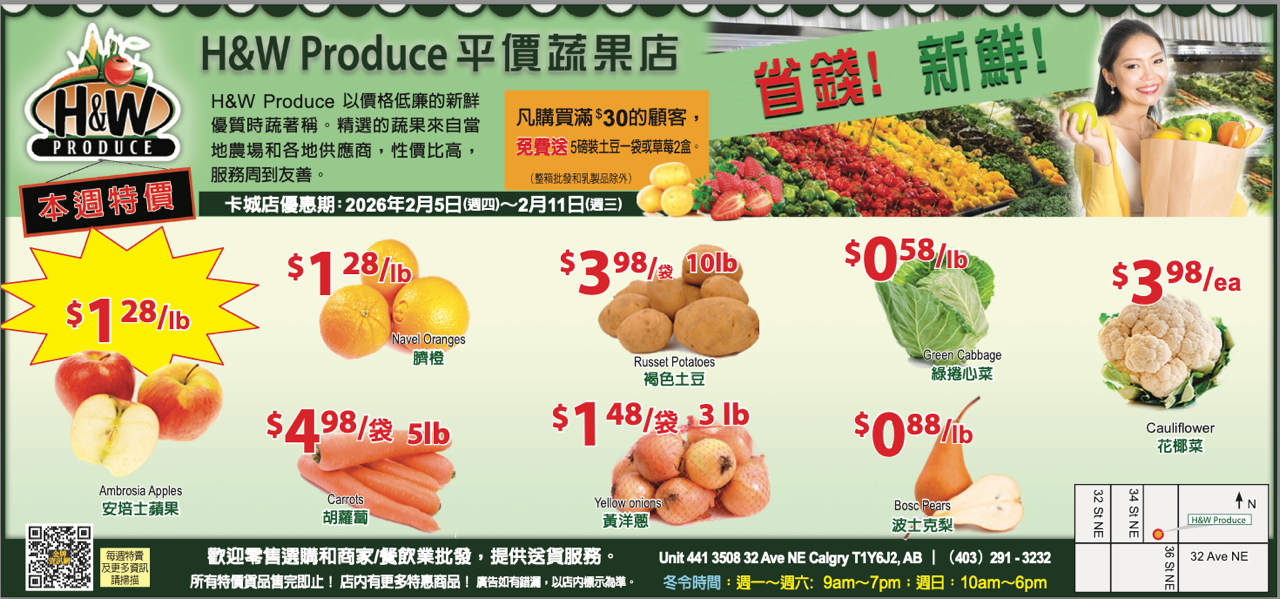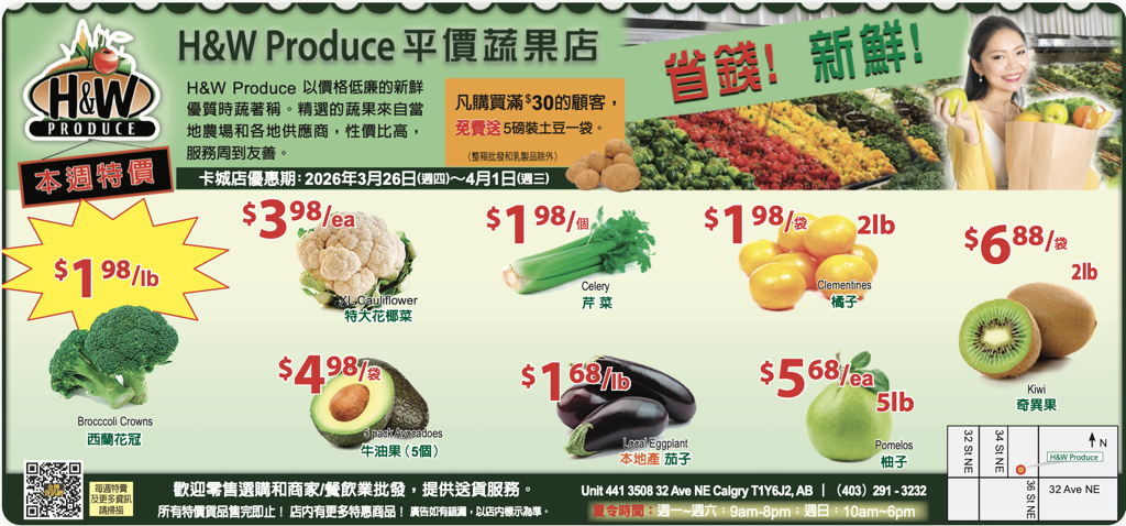 卡尔加里/卡加利 H&W Produce平价蔬果店 电话:...