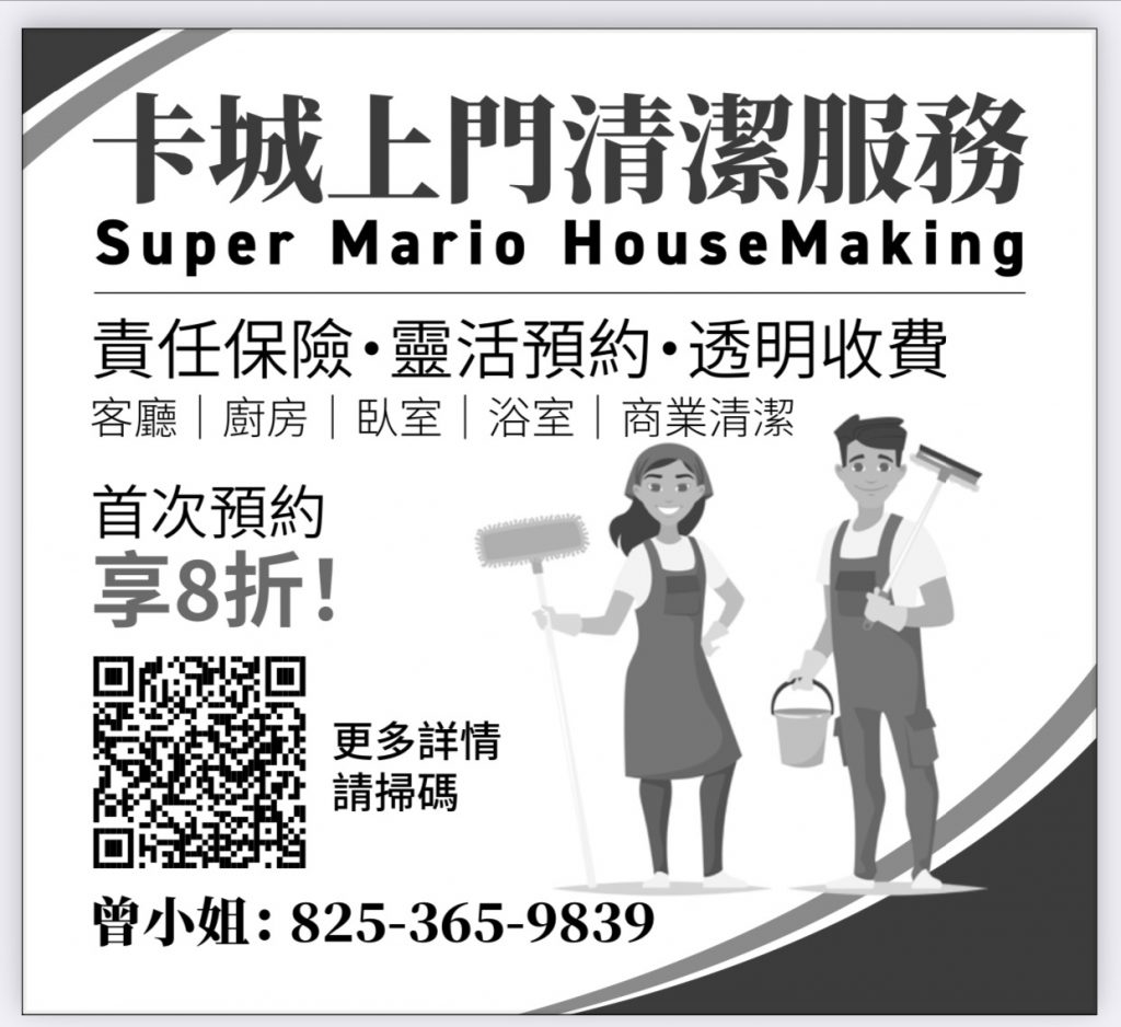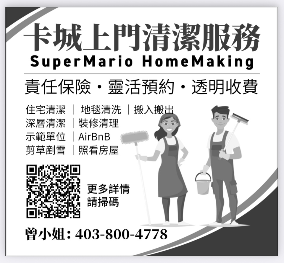 卡爾加里/卡加利 卡城上門家居清潔 SuperMario HomeMaking 電話:403-800-4778