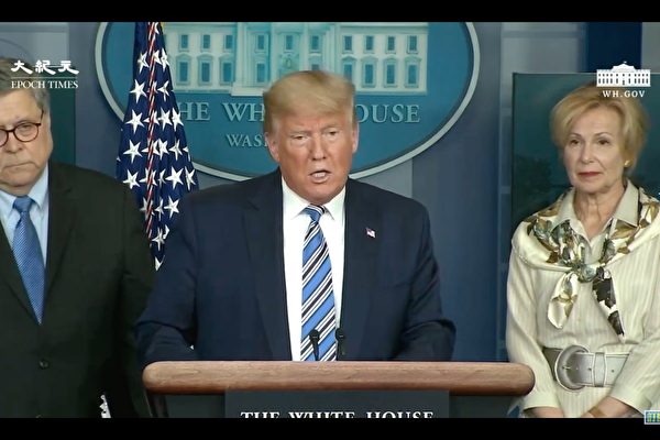 川普说,美国应对中共病毒大流行的首要任务是“生命与安全,其次才是经济”。