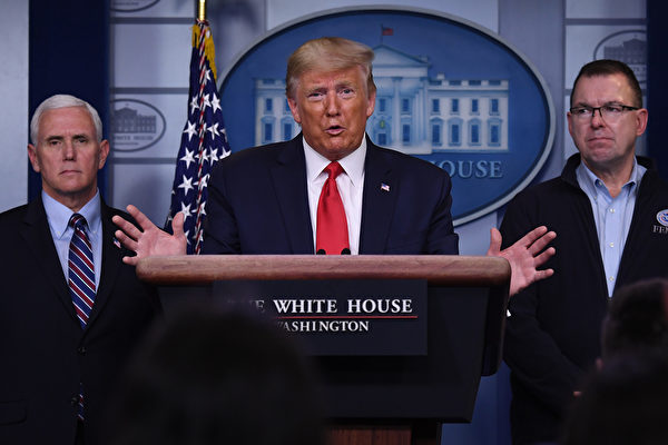 川普说,美国应对中共病毒大流行的首要任务是“生命与安全,其次才是经济”。