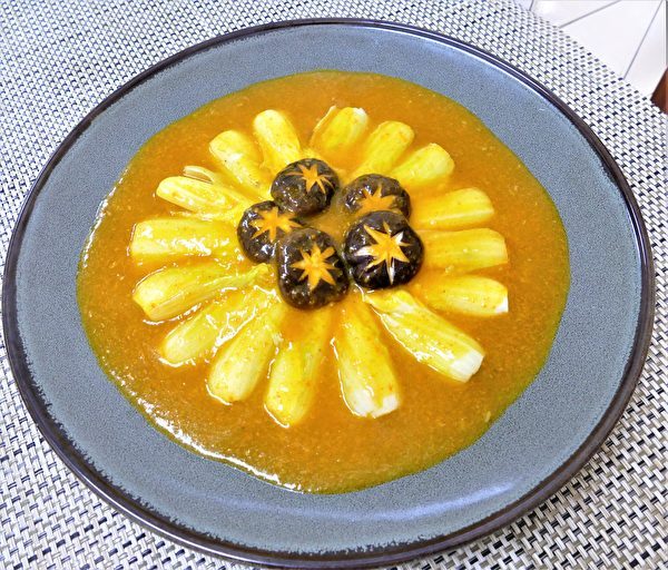 青色的白萝卜叶养肝、红色的胡萝卜养心、黄色的牛蒡养脾、白色的白萝卜养肺、黑色的香菇养肾。