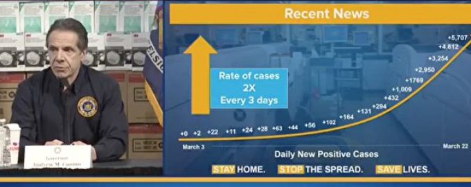 中共病毒疫情在美国大爆发,其中纽约州沦陷为重疫区。