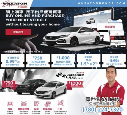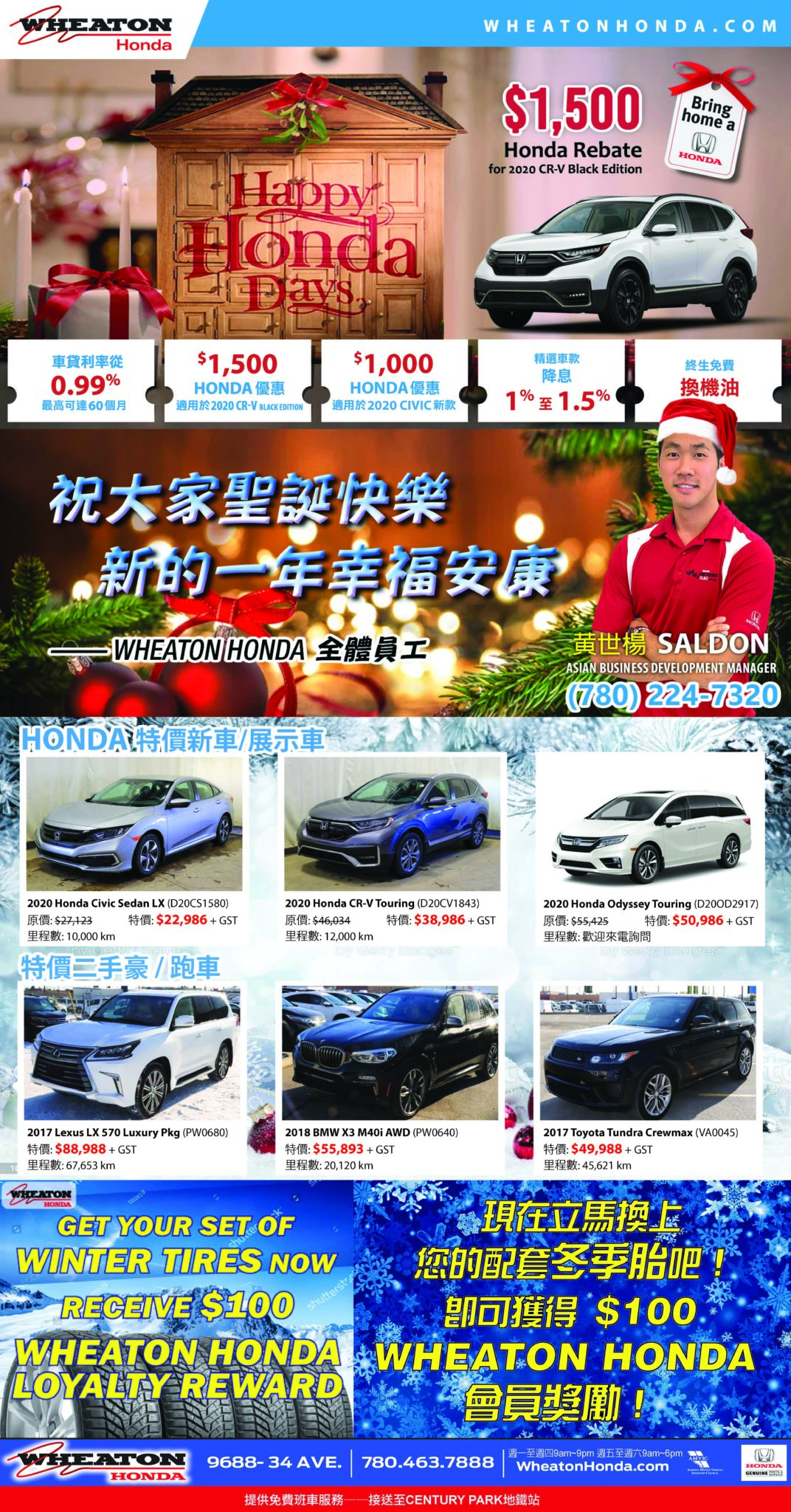 埃德蒙顿 Wheaton Honda 本田车行 电话:780-224-7320
