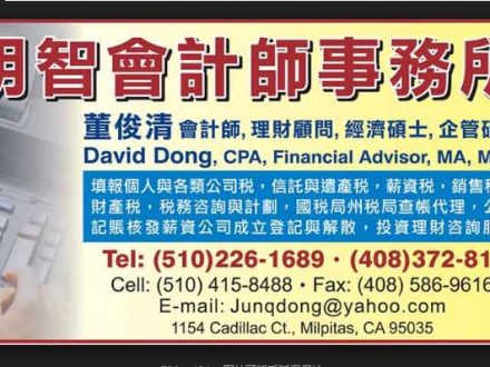 加州 會計/加州 會計師/加州会计/加州会计师/明智税务会计事务所 DAVID DONG EA / FINANCIAL ADVISOR, MA, MBA(510) 226-1689...