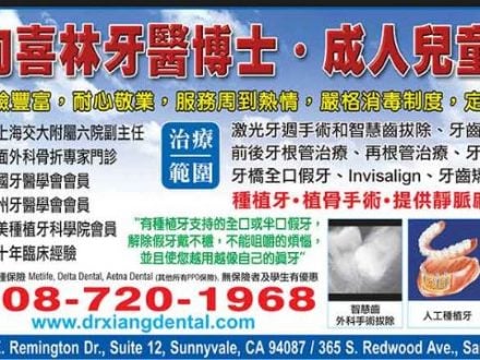 向喜林牙医博士 – XIANG, XILIN, D.D.S.(408) 720-1968
