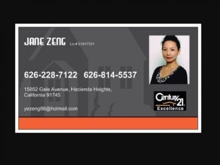 曾烨 – Jane Zeng626-228-7122; 微信:Jane2331924; 626-814-5537